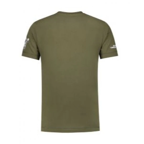 Camiseta verde oliva con bandera de Francia en la parte delantera.
