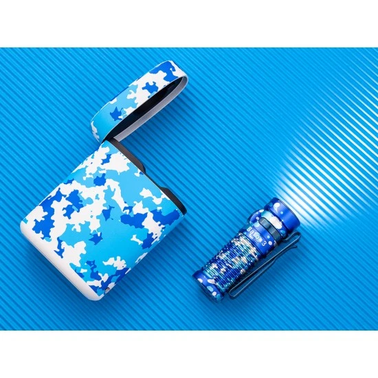 - Un hermoso anillo azul anodizado alrededor de la cabeza de la lámpara y el interruptor hacen que la lámpara sea inmediatamente reconocible como una Olight real.